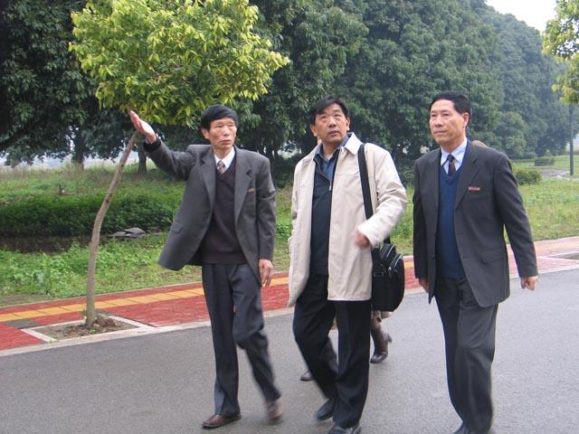 圖為國家教育部學(xué)生司綜合處解漢林處長(中)在孫院長和林副書記的陪同下參觀校園。
