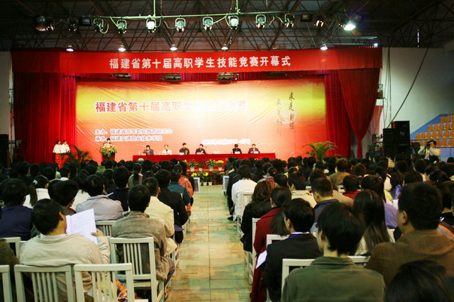 福建省第十屆高職學生技能競賽于2006年12月29—30日在福建交通職業(yè)技術學院隆重舉行。此次技能競賽是由福建省高等職業(yè)教育研究會主辦。來自32所院校617名師生代表參加了此次十一年來規(guī)模最大、競賽項目最多、參賽人數(shù)最多的一次技能競賽。選手們就專業(yè)計算機、非專業(yè)計算機、專業(yè)英語、非專業(yè)英語、毛筆書法、硬筆書法、建筑CAD、會計電算化、工程測量、數(shù)學建模、PLC程序設計、汽車檢測與維修等12個項目進行角逐。