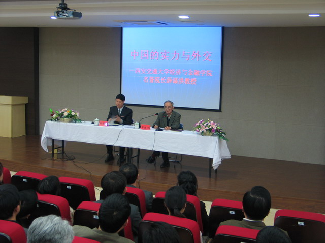 4月2日下午,院領(lǐng)導(dǎo)和全體教職工在學(xué)術(shù)報(bào)告廳聽(tīng)取了西安交通大學(xué)經(jīng)濟(jì)與金融學(xué)院名譽(yù)院長(zhǎng),北京大學(xué)、清華大學(xué)博士生導(dǎo)師薛謀洪教授題為“中國(guó)的實(shí)力與外交”的講座。講座由孫芳仲院長(zhǎng)主持。