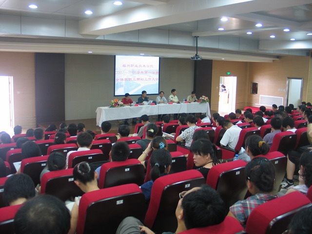 在教職員工會(huì)上,孫院長(zhǎng)通報(bào)了上學(xué)期學(xué)院申報(bào)國(guó)家示范性院校評(píng)審情況,并對(duì)新學(xué)年學(xué)院工作作全面部署,他指出新學(xué)年學(xué)院要以鄧小平理論、“三個(gè)代表”重要思想和科學(xué)發(fā)展觀為指導(dǎo),認(rèn)真學(xué)習(xí)貫徹黨的十七大精神,實(shí)施學(xué)院“十一五”發(fā)展規(guī)劃,認(rèn)清形勢(shì),更新觀念,把握機(jī)遇,改革創(chuàng)新,以爭(zhēng)創(chuàng)示范性高職院校、構(gòu)建和諧校園為目標(biāo),加強(qiáng)內(nèi)涵建設(shè),提高教育教學(xué)質(zhì)量,打造特色品牌,使學(xué)院規(guī)模、結(jié)構(gòu)、質(zhì)量、效益協(xié)調(diào)發(fā)展,辦學(xué)水平有新的突破,服務(wù)海峽西岸經(jīng)濟(jì)區(qū)的能力有較大提高。