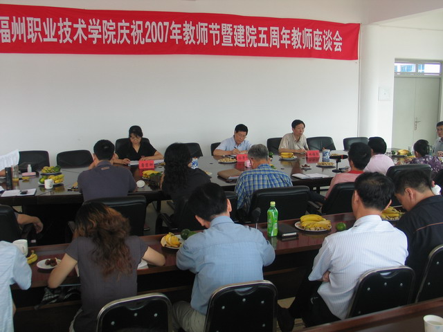 2007年9月10日上午,院領(lǐng)導孫芳仲、金昌余、林福榮、詹碧卿和各部門、系部負責人、教師代表一起參加了學院慶祝2007年教師節(jié)暨建院五周年座談會。教師代表們回顧了建院五周年來學院取得的成績,共同展望學院美好的未來。