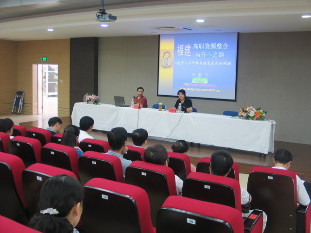 2007年9月10日下午,學(xué)院邀請省高教學(xué)會副秘書長林素川副研究員作題為“福建高職資源整合之路”的專題報告。