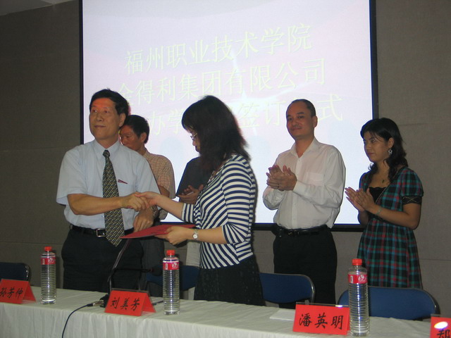 2007年10月11日上午10點、12日下午3點,我院與冠捷電子(福建)有限公司、福建省金得利集團有限公司在綜合樓二樓學(xué)術(shù)報告廳分別簽訂了聯(lián)合辦學(xué)協(xié)議。
