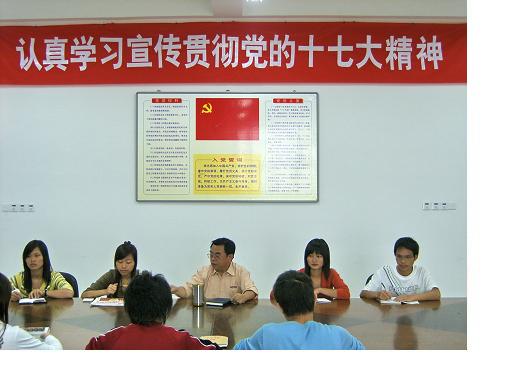 10月24日下午,技術(shù)工程系黨支部林奇書記組織學(xué)生黨員學(xué)習(xí)胡錦濤總書記在十七大的報(bào)告《高舉中國(guó)特色社會(huì)主義偉大旗幟 為奪取全面建設(shè)小康社會(huì)新勝利而奮斗》(摘要)。在學(xué)習(xí)座談中,學(xué)生黨員感到盛會(huì)催人奮進(jìn),報(bào)告鼓舞人心。尤其是對(duì)報(bào)告中提到的過去五年改革開放和全面建設(shè)小康社會(huì)取得重大進(jìn)展,學(xué)生們深有感觸。來自農(nóng)村的05級(jí)應(yīng)用電子技術(shù)專業(yè)1班學(xué)生洪碧云說,這幾年國(guó)家的農(nóng)村政策越來越好,現(xiàn)在農(nóng)業(yè)稅不收了,什么“三提五統(tǒng)”都沒了,農(nóng)民的生活一年比一年好。