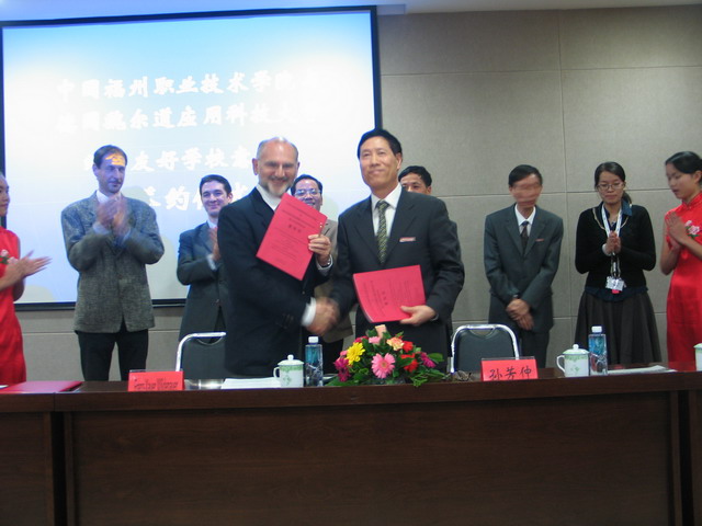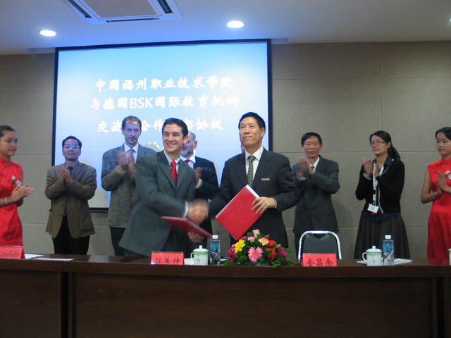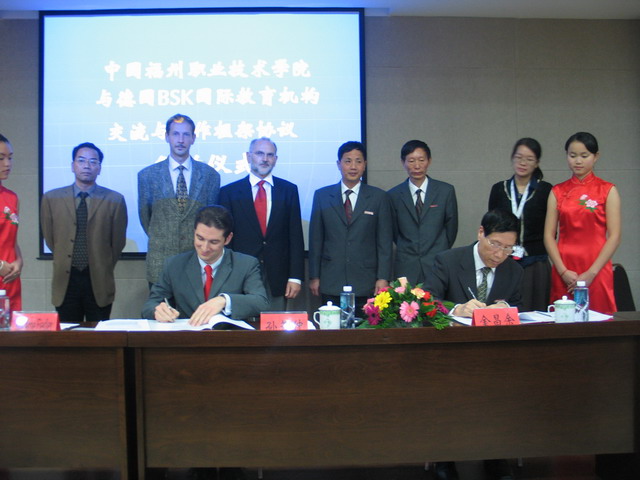 此次簽約儀式的隆重舉行,將進(jìn)一步增進(jìn)福州職業(yè)技術(shù)學(xué)院和德國BSK國際教育機(jī)構(gòu)(德國歐洲教育服務(wù)中心)及德國魏爾道應(yīng)用科技大學(xué)之間友好關(guān)系,雙方代表都希望通過今后的友好交往,不斷促進(jìn)中德兩國在高等職業(yè)教育領(lǐng)域的交流與合作,促進(jìn)雙方的共同發(fā)展。
