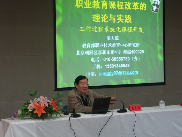 姜大源教授是我國著名的職業(yè)教育專家,出版過《當代德國職業(yè)教育研究》、《新世紀職業(yè)教育改革與發(fā)展的德國視點》等多部專著,參加過國家“八五”、“九五”、“十五”和“十一五”職業(yè)教育規(guī)劃,也是2006年國家示范性高等職業(yè)院建設規(guī)劃的策劃人。在報告中,姜大源教授結(jié)合我國以及世界職業(yè)教育的現(xiàn)狀和未來的發(fā)展趨勢,深入淺出、通俗易懂地闡述了職業(yè)教育的基本規(guī)律及其特點,對職業(yè)教育作為一種教育類型的本質(zhì)特征進行了深刻分析;結(jié)合職業(yè)教育的實際,闡述了職業(yè)教育課程開發(fā)的基本方法、職業(yè)教育課程開發(fā)的理論基礎等方面的內(nèi)容,并通過豐富的職業(yè)教育課程開發(fā)典型案例,說明了工作過程導向課程開發(fā)的基本原則和方法,從可操作性的角度,提出了工作課程導向課程開發(fā)的基本路線。姜教授的報告全方位地闡述了職業(yè)教育課程改革的理論和實踐,受到大家的熱烈歡迎,進一步提高了教師們對基于工作過程的課程改革的認識,對學院創(chuàng)建示范性高職院校起到積極的推動作用。