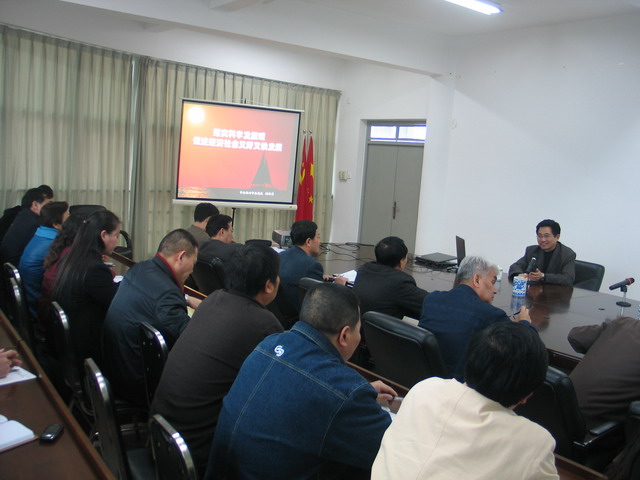 在報告中,游伯笙教授從科學(xué)發(fā)展觀提出的深刻背景、把握科學(xué)發(fā)展觀的科學(xué)內(nèi)涵和精神實質(zhì)、用科學(xué)發(fā)展觀統(tǒng)領(lǐng)經(jīng)濟社會發(fā)展三個方面進行了闡述。游伯笙教授在報告中指出,我們要堅持把發(fā)展作為黨執(zhí)政興國的第一要務(wù),要把握科學(xué)發(fā)展觀的核心,堅持以人為本,堅持全面、協(xié)調(diào)、可持續(xù)發(fā)展,堅持統(tǒng)籌兼顧;要轉(zhuǎn)變發(fā)展觀念,樹立正確的政績觀;轉(zhuǎn)變經(jīng)濟發(fā)展方式,促進國民經(jīng)濟又好又快發(fā)展;要統(tǒng)籌城鄉(xiāng)發(fā)展,建設(shè)社會主義新農(nóng)村;提高自主創(chuàng)新能力,建設(shè)創(chuàng)新型國家;要加強能源資源節(jié)約和生態(tài)環(huán)境保護,增強可持續(xù)發(fā)展能力;要繼續(xù)深化改革,完善市場經(jīng)濟體制;加快推進改善民生為重點的社會建設(shè)。