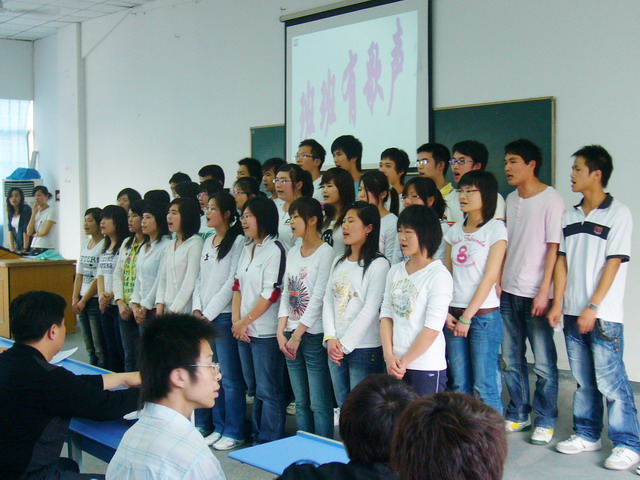 06國際商務(wù)(1)班以深情的感恩之心,溫情地唱出了《愛,因為在心中》的心聲;06市場營銷(1)班以激情與豪邁唱響了當(dāng)代大學(xué)生的《壯志雄心》; 07國際商務(wù)(1)班憑特別的《愛》獻(xiàn)給特別的你——“商貿(mào)系大家庭”,深深感染了在座的廣大師生……班班有歌聲,處處顯和諧,優(yōu)美的旋律,嘹亮的歌聲,充分表現(xiàn)了我系大學(xué)生團(tuán)結(jié)友愛、積極進(jìn)取的精神風(fēng)貌。系領(lǐng)導(dǎo)莊曉鐘、閆丹文及部分教師代表也應(yīng)邀擔(dān)任評委,為同學(xué)們加油鼓勵,本次活動頗受同學(xué)們的歡迎,取得圓滿成功。