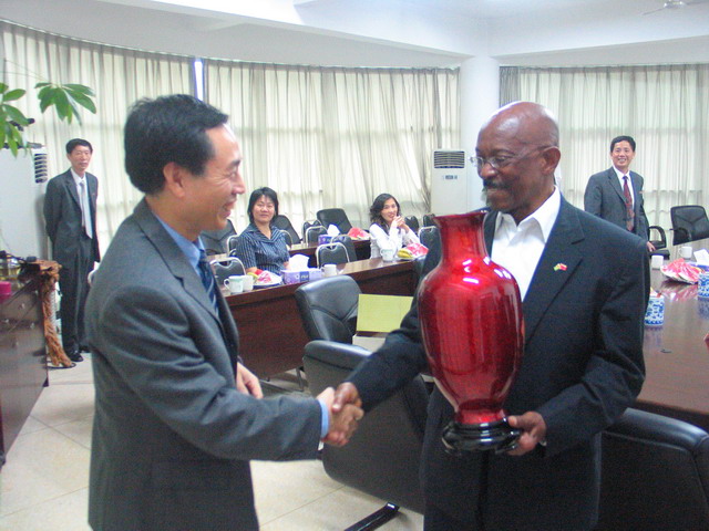 5月18日下午,圭亞那喬治敦市市長(zhǎng)漢密爾頓•格林率政府代表團(tuán)在市外辦領(lǐng)導(dǎo)陪同下蒞臨學(xué)院參觀考察,受到院黨委書(shū)記俞云金、副院長(zhǎng)金昌余、黨委副書(shū)記林福榮的熱情接待,外賓們?cè)谠侯I(lǐng)導(dǎo)陪同下參觀美麗的校園和校內(nèi)實(shí)訓(xùn)基地,賓主雙方進(jìn)行親切交談。