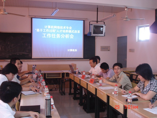 2008年6月29日 ,計(jì)算機(jī)系召開(kāi)網(wǎng)絡(luò)技術(shù)專(zhuān)業(yè)“基于工作過(guò)程”人才培養(yǎng)模式改革工作任務(wù)分析會(huì),邀請(qǐng)福州思博網(wǎng)絡(luò)科技有限公司、福建庫(kù)易信息科技有限責(zé)任公司、福建富士通信息軟件有限公司、東軟集團(tuán)有限公司、福州柒玖計(jì)算機(jī)有限公司、福建省郵電工程等公司一線(xiàn)的技術(shù)人員及往屆畢業(yè)生參加。