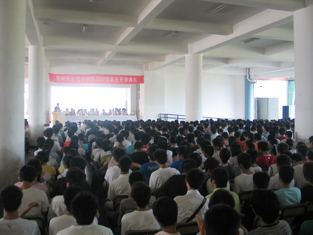 9月6日,福州職業(yè)技術學院2008級新生開學典禮在綜合樓一樓大廳隆重舉行,來自全國9個?。ㄊ校⒆灾螀^(qū)的1800多名新生在這里開始了他們嶄新的人生旅程,部分教師代表和他們一起見證了這一歷史時刻。