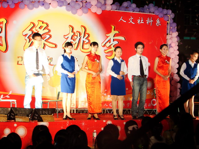 9月11日晚,在中華民族傳統(tǒng)的中秋佳節(jié)即將來臨之際,全系部分教師和600多名學(xué)生歡聚在學(xué)院的噴泉廣場,組織了一場以“月緣桃李”為主題的迎新晚會。晚會上健美操、歌舞、小品、笑話、歌曲串唱等節(jié)目豐富多彩,達(dá)到了師生同樂的目的。