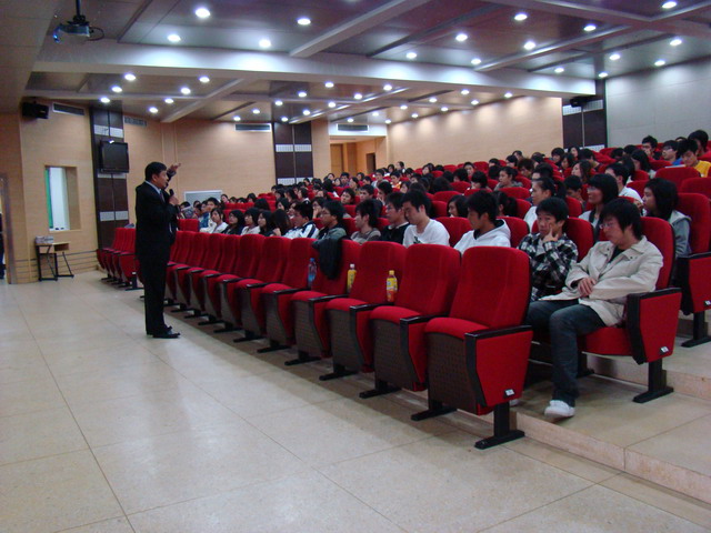 加拿大圣力嘉學院教授首先介紹了加拿大目前情況——加拿大為聯(lián)合國最佳居住國、加拿大的教育體系、圣力嘉學院的總體情況、商學院專業(yè)設置、學生特點、教學特色等;隨后,對同學們目前的英語學習提出了方法與建議,講解了如何在出國前做好心理準備和文化知識儲備,并詳細回答了同學們迫切希望了解的出國留學深造等問題。