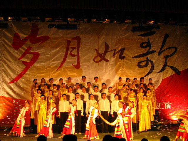 匯演節(jié)目精采、形式多樣、內(nèi)容豐富,融藝術(shù)性、娛樂性于一身。青春活潑的《中國全家?!肺璧感蚯屓嗽诤涞募竟?jié)中感受著春的氣息、春的喜悅,節(jié)目《我家住在閩江邊》伴隨著濃郁福建歌曲特色的音樂聲為匯演營造出一派熱烈祥和的節(jié)日氣氛,街舞組合《炫》、引人深思的小品《雷雨》、高雅優(yōu)美的芭蕾舞《紅色娘子軍》、野性魅力的拉丁舞《斗牛舞》、極具特色的禮儀模特表演、活力四射的健美操《魅力焦點(diǎn)》等節(jié)目都給大家留下深刻的印象。匯演上同學(xué)們唱出了熱情、舞出了興致,最后在一曲《向著太陽》中結(jié)束了此次匯演,通過匯演,同學(xué)們進(jìn)一步了解改革開放30周年來取得的偉大成就,同時(shí)對(duì)未來充滿了向往。