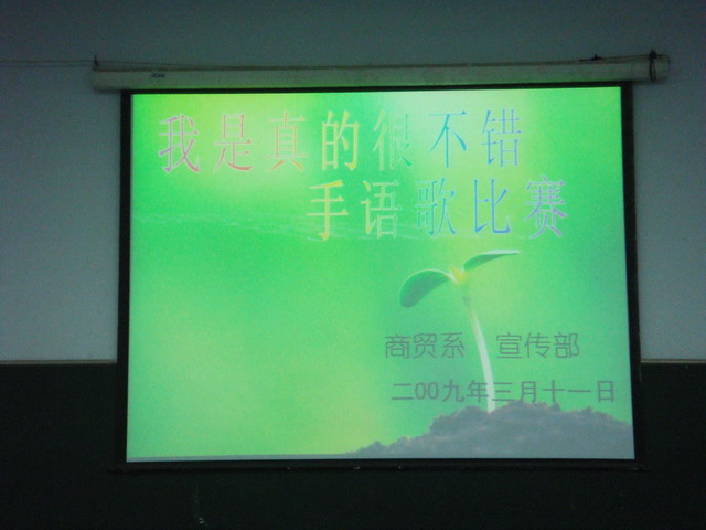為了增強(qiáng)同學(xué)們的自信心,培養(yǎng)堅韌不拔、百折不撓、戰(zhàn)勝自我、超越自我的優(yōu)良品質(zhì),以健康良好的心態(tài)面對學(xué)習(xí)、工作和生活,商貿(mào)系于2009年3月11日晚在第一多媒體舉辦了大學(xué)生心理健康教育系列活動之“我是真的很不錯”手語歌比賽。