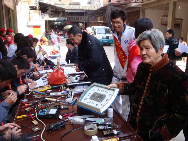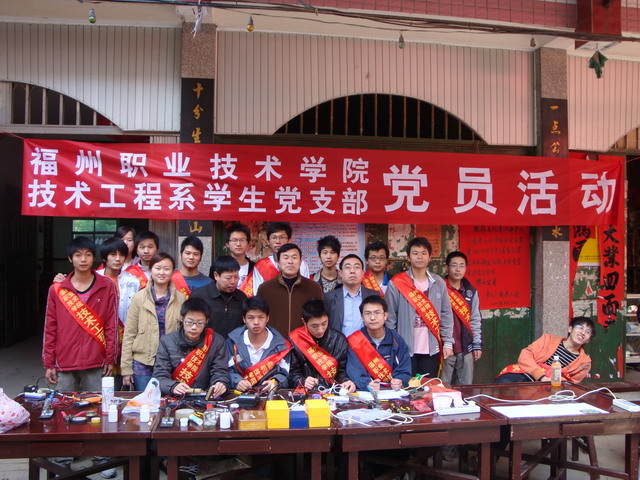技術(shù)工程系學(xué)生黨支部于2009年3月15日組織前往榕橋村開(kāi)展“義務(wù)維修、服務(wù)大眾”為主題的黨員立項(xiàng)活動(dòng)。本次活動(dòng)由郭祥東老師、邵長(zhǎng)軍老師、鄧華老師、輔導(dǎo)員劉思鍶老師等帶領(lǐng)學(xué)生預(yù)備黨員、入黨積極分子等20人參加?;顒?dòng)中,同學(xué)們各盡其責(zé):有登記人員、維修人員、家電使用小竅門及安全用電宣傳講解人員。大家認(rèn)真維修村民送過(guò)來(lái)的電器,積極宣傳一些家電的安全使用常識(shí)。