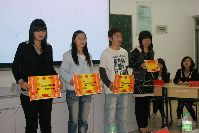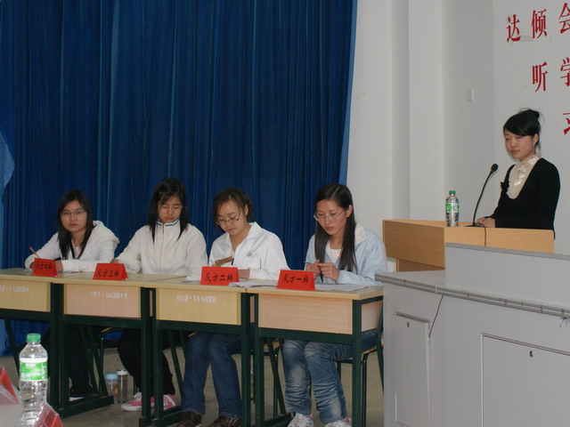 辯論賽開始后,正反雙方圍繞辯論主題,根據(jù)自己的立論展開辯論,辯論雙方唇槍舌戰(zhàn),據(jù)理力爭,思維敏捷,整個辯論過程各方你來我往,勢均力敵,不分上下,氣氛緊張活潑。選手們表現(xiàn)出整體作戰(zhàn)的團隊精神與頑強的作風。最后,08級商務(wù)日語1班代表隊獲得了本次辯論賽的第一名,08級商務(wù)英語2班獲得了第二名,08級商務(wù)英語1班獲得了第三名。08級商務(wù)英語2班代表隊的陳清清同學以其敏捷的思維、出色的發(fā)揮、抑揚頓挫的辯護獲得本場辯論賽“最佳辯手”的稱號。