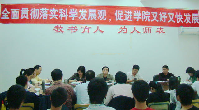 會(huì)上,俞云金同志就如何深刻把握科學(xué)發(fā)展觀的科學(xué)內(nèi)涵、精神實(shí)質(zhì)和根本要求,以及把科學(xué)發(fā)展觀貫穿于學(xué)院發(fā)展的全過(guò)程作了全面的闡述。俞云金同志在報(bào)告中指出,服務(wù)地方經(jīng)濟(jì)社會(huì)發(fā)展是學(xué)院實(shí)現(xiàn)科學(xué)發(fā)展觀的第一要?jiǎng)?wù),要立足省會(huì)中心城市,服務(wù)海西,輻射全國(guó),緊緊圍繞海峽西岸經(jīng)濟(jì)建設(shè)和省會(huì)中心城市經(jīng)濟(jì)社會(huì)發(fā)展,努力形成辦學(xué)特色,促進(jìn)人才培養(yǎng)模式改革,培養(yǎng)一大批符合社會(huì)需要的高技能應(yīng)用型人才。俞云金同志還指出,學(xué)院堅(jiān)持以人為本就是要把師生員工的需求作為學(xué)院發(fā)展的起點(diǎn)和歸宿,核心是建設(shè)一支高素質(zhì)高水平的教師隊(duì)伍和管理隊(duì)伍,培養(yǎng)一大批品德兼優(yōu)、德才兼?zhèn)涞母呒寄苋瞬牛粓?jiān)持全面協(xié)調(diào)可持續(xù)發(fā)展,是學(xué)院實(shí)現(xiàn)科學(xué)發(fā)展的基本要求,必須堅(jiān)持校企合作、工學(xué)結(jié)合的人才培養(yǎng)模式,正確處理改革、發(fā)展、穩(wěn)定的關(guān)系,強(qiáng)化內(nèi)涵建設(shè),突顯特色品牌,實(shí)現(xiàn)學(xué)院可持續(xù)發(fā)展;學(xué)院實(shí)現(xiàn)科學(xué)發(fā)展必須遵循統(tǒng)籌兼顧的根本方法,正確處理好辦學(xué)規(guī)模與辦學(xué)質(zhì)量、當(dāng)前工作與長(zhǎng)遠(yuǎn)目標(biāo)、硬實(shí)力與軟實(shí)力、理論教學(xué)與實(shí)踐教學(xué)四個(gè)方面的關(guān)系。俞云金同志的報(bào)告聯(lián)系實(shí)際,深入淺出、通俗易懂,既有理論學(xué)習(xí)的指導(dǎo),又有學(xué)院可持續(xù)發(fā)展的實(shí)踐指導(dǎo),大家受益非淺。