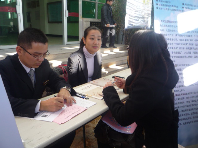 2012年12月28日,應(yīng)用外語系結(jié)合校園招聘會(huì)在綜合樓102、103教室開展了2013屆畢業(yè)生專場(chǎng)招聘會(huì),超捷國際物流集團(tuán)、縱騰網(wǎng)絡(luò)等公司向畢業(yè)生們介紹了招聘計(jì)劃、崗位要求等,并組織現(xiàn)場(chǎng)面試,有多名畢業(yè)生與上述公司達(dá)成就業(yè)意向。