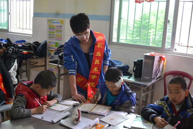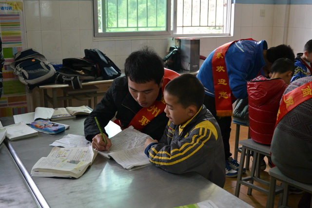 志愿者的到來(lái),讓孩子們感到格外的溫暖。志愿者這次通過(guò)多種方式來(lái)傳遞了愛(ài)心,增強(qiáng)愛(ài)的力量。有的志愿者給孩子們檢查作業(yè),復(fù)習(xí)功課,有的志愿者給孩子講故事,做游戲,有的志愿者教孩子們手繪,剪紙。哥哥姐姐們的熱心關(guān)懷使孩子們臉上溢出幸福的笑臉,教室里歡聲笑語(yǔ),其樂(lè)融融。最后,志愿者們?yōu)樾∨笥勋I(xiàn)上了精美的禮品,并希望小朋友們要努力學(xué)習(xí)知識(shí)文化,成為未來(lái)有用之才。