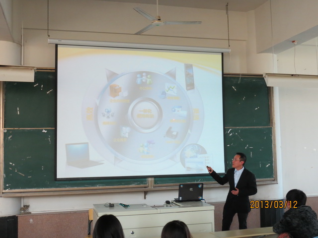 2013年3月12日下午2點(diǎn),計(jì)算機(jī)系邀請(qǐng)?jiān)扑歼_(dá)科技公司資深軟件專家宋立恒在一號(hào)教學(xué)樓301室開(kāi)展了一場(chǎng)以“微軟生產(chǎn)力平臺(tái)——科技以人為本,創(chuàng)新成就未來(lái)”為主題的講座。