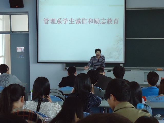 為增強(qiáng)同學(xué)們的誠(chéng)信意識(shí),進(jìn)一步推進(jìn)大學(xué)生思想教育工作,引導(dǎo)學(xué)生塑造誠(chéng)信品質(zhì),加強(qiáng)勵(lì)志教育,弘揚(yáng)中華美德,管理系黨總支于2013年5月6日舉行誠(chéng)信與勵(lì)志教育活動(dòng)。