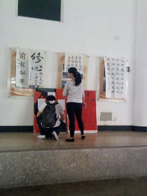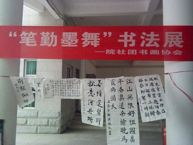 2013年4月18日,福州職業(yè)技術(shù)學(xué)院許多學(xué)生云集綜合樓大廳,學(xué)院書畫協(xié)會主辦的“筆勤墨舞”書法展在此舉行,共有80多幅作品進行了為期三天的展覽。這些作品基本代表了書畫協(xié)會努力的成果。