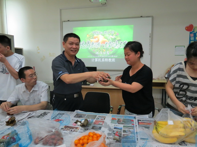 石榴花染紅了五月,梔子醇厚的香氣裊裊襲來,空氣中彌漫著淡淡的粽葉和艾蒿的縷縷清香,又是一年一度的端午時節(jié)了,為了讓特教班的學生們感受醇厚的端午文化,計算機系于2013年6月8日下午,在411教室舉辦了一場主題為“萬水千山‘粽’是情”的端午節(jié)茶話會。在茶話會上,計算機系黨總支副書記陳建國老師、特教專業(yè)負責人傅剛老師及輔導員肖水清老師給特教生們帶去了真誠的端午祝福。
