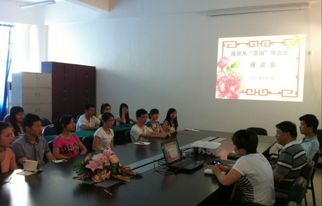 我想報(bào)考事業(yè)單位,適合專業(yè)的崗位多嗎?我現(xiàn)在壓力挺大的,應(yīng)該繼續(xù)深造還是工呢?能力重要還是學(xué)歷重要?我想創(chuàng)業(yè),有哪些優(yōu)惠政策嗎?為答疑解惑,2013年6月10日,商貿(mào)系在2#513會(huì)議室舉行2013屆“雙困”畢業(yè)生座談會(huì),系黨總支副書記陳寶龍、輔導(dǎo)員以及16名“雙困”畢業(yè)生參加了座談會(huì)。