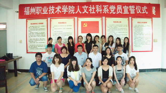 人文社科系黨總支于2013年6月9日上午在綜合樓315會議室隆重舉行了新黨員入黨宣誓儀式。宣誓儀式由學生黨支部書記董欽同志主持,系黨總支書記賈同恩同志和系輔導員及20名新黨員參加了宣誓儀式。