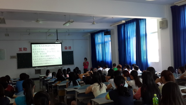 商務英語專業(yè)教研室主任韓寧介紹了商務英語專業(yè)的基本情況和發(fā)展前景,激發(fā)學生熱愛專業(yè)、學好專業(yè)的熱情;商務日語專業(yè)教研室主任邱華月以“認識日語、提高自己”為題,教育學生學習日語、使用日語、掌握日語,在“做中學、學中做”,掌握專業(yè)技能,提高綜合素質,為實現(xiàn)人生的夢想奠定基礎;輔導員韓燕霞老師開設了“規(guī)劃自我、贏取未來”的職業(yè)生涯規(guī)劃專題講座,教會學生認識自我、合理規(guī)劃、理性選擇、有效策劃,讓同學們對自己的大學生活和人生追求有了更深入地思考;新生班主任對同學們在大學的學習、工作、生活等方面給予了具體的指導,引導新生盡快實現(xiàn)從高中到大學的角色轉變。
