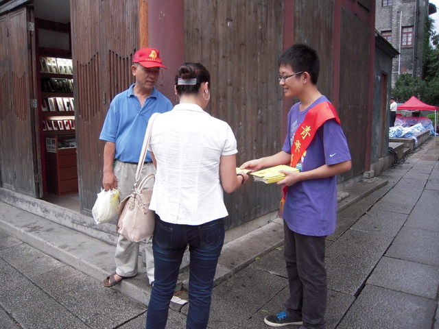2013年9月22日,在三坊七巷南后街,經(jīng)濟系學(xué)生志愿者參加了由福州市社區(qū)大學(xué)承辦“學(xué)致文明•行達(dá)和諧•筑夢社區(qū)”主題文藝晚會,并提供禮儀服務(wù)、宣傳工作等志愿活動。