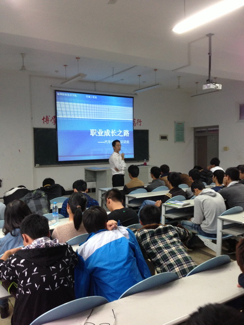 這次講座的主題為“職業(yè)成長之路”。陳文起老師回顧了自己十多年的職業(yè)發(fā)展歷程,侃侃而談,風(fēng)趣幽默,從幾個方面分享了自己的職業(yè)人之路。