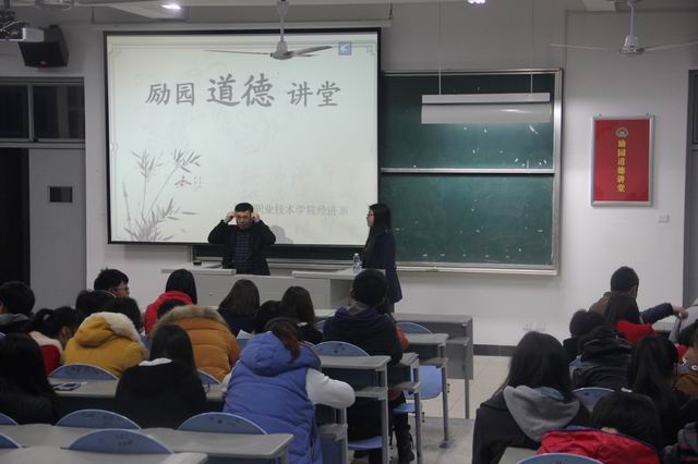 講堂以身邊的人身邊事例告訴大學(xué)生如何做一個(gè)金融戰(zhàn)線(xiàn)上的道德標(biāo)兵,進(jìn)一步加強(qiáng)了經(jīng)濟(jì)系大學(xué)生的職業(yè)道德教育,弘揚(yáng)中華民族傳統(tǒng)美德。