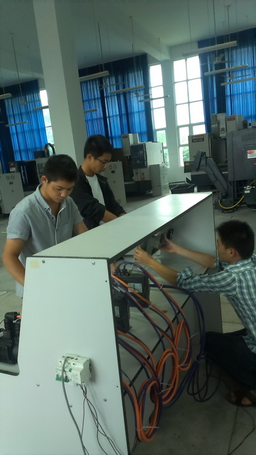 為進(jìn)一步完善數(shù)控專業(yè)實(shí)訓(xùn)平臺(tái)建設(shè),強(qiáng)化校企合作,充分、有效、合理地利用武漢華中數(shù)控股份有限公司準(zhǔn)捐贈(zèng)的2套價(jià)值10萬元人民幣的先進(jìn)數(shù)控系統(tǒng)展示平臺(tái),實(shí)訓(xùn)指導(dǎo)教師蔡七林、李壯斌、連燦鑫帶領(lǐng)學(xué)生,秉承綠色、環(huán)保、節(jié)能的宗旨,利用已報(bào)廢的電器智能化控制平臺(tái)實(shí)驗(yàn)臺(tái),成功改造兩套數(shù)控系統(tǒng)展示平臺(tái)的裝置。