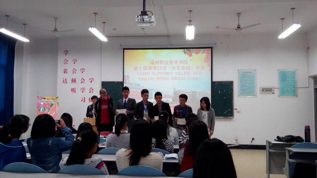 本次英語口語(非專業(yè)組)大賽分海選、初賽、決賽三個(gè)階段。賽前,國(guó)際學(xué)院語言中心外教Mr. Asher和陳梅芳老師都充分利用課余時(shí)間積極指導(dǎo)林毅寒同學(xué),如修改參賽演講稿,糾正其發(fā)音等。通過為期兩周的賽前指導(dǎo),林毅寒同學(xué)在比賽中面對(duì)其他院系的二、三年級(jí)選手,毫不膽怯,終以優(yōu)異的成績(jī)闖進(jìn)決賽。在決賽階段,林毅寒同學(xué)演講內(nèi)容為“歡送辭”,他演講發(fā)音清晰、標(biāo)準(zhǔn),充滿激情,感染了在場(chǎng)的每一位評(píng)委老師和學(xué)生,在互動(dòng)問答環(huán)節(jié)中表現(xiàn)也尤為出色,贏得了評(píng)委老師的認(rèn)可,最終以8.64的總分,獲得第十屆校技能大賽英語口語(非專業(yè)組)二等獎(jiǎng)。