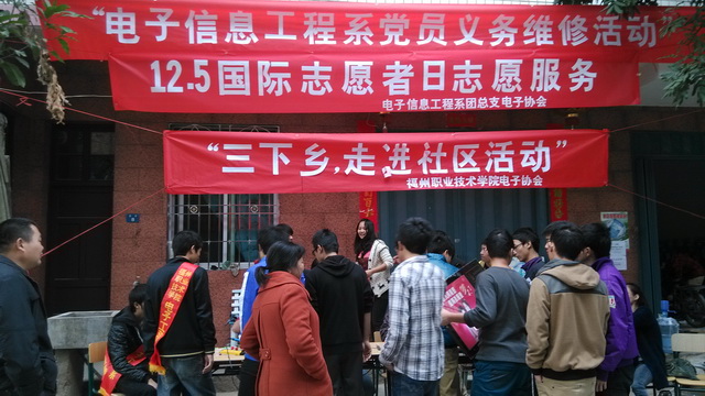 12月5日是國(guó)際志愿者日,由電子信息工程系團(tuán)總支、電子協(xié)會(huì)共同承辦的“12.5國(guó)際志愿者日志愿服務(wù)”活動(dòng)在榕橋村舉行,志愿者、電子協(xié)會(huì)成員參加了此次活動(dòng)。