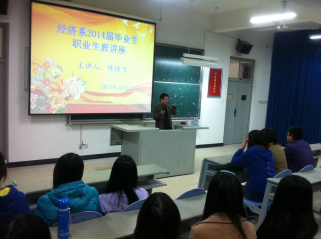 為了加強(qiáng)同學(xué)們對當(dāng)前就業(yè)形勢和社會(huì)整體求職狀況的了解,明確就業(yè)目標(biāo),增強(qiáng)就業(yè)技能,更好指導(dǎo)同學(xué)們進(jìn)行職業(yè)生涯規(guī)劃,經(jīng)濟(jì)系于2013年12月19日晚在309教室舉辦了“大學(xué)生職業(yè)生涯規(guī)劃”講座。本次講座邀請企業(yè)金牌內(nèi)訓(xùn)師、海成企業(yè)管理咨詢特邀高級講師、知名企業(yè)高級顧問——陳仕飛擔(dān)任主講,2011級相關(guān)專業(yè)畢業(yè)班學(xué)生出席了本次講座。