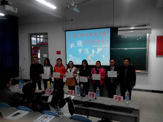 為了幫助大學生明確學習目標,規(guī)劃好大學期間的學習、生活,促進學生樹立職業(yè)意識,及早規(guī)劃職業(yè)生涯,從觀念、心態(tài)、技能等方面做好應對競爭壓力和職業(yè)挑戰(zhàn)的準備,2013年12月17日下午在2號教學樓509教室,經(jīng)濟系開展了以“放飛夢想 規(guī)劃青春”為主題的2013年大學生職業(yè)生涯規(guī)劃大賽。
