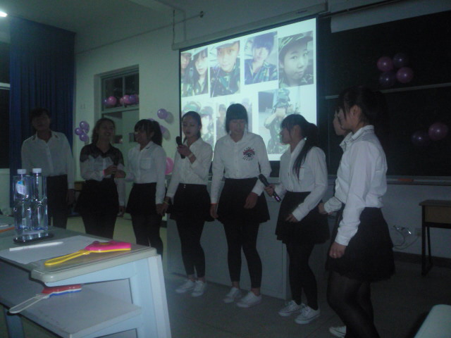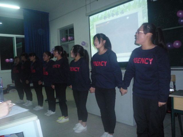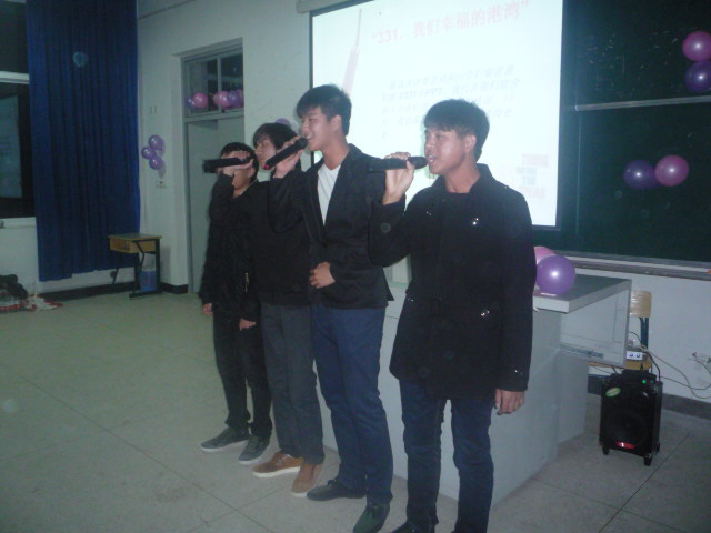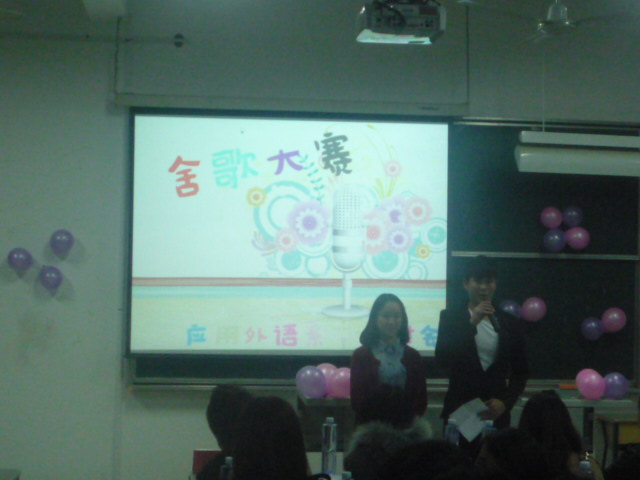 為積極響應(yīng)學(xué)院“青春助力中國(guó)夢(mèng),宿舍文化展風(fēng)采”宿舍文化節(jié)活動(dòng),2013年12月5日晚,應(yīng)用外語(yǔ)系在2號(hào)教學(xué)樓509教室舉辦了舍歌大賽,共有八間宿舍代表參加了決賽。