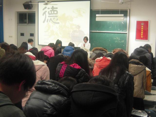 為進一步提升畢業(yè)生職業(yè)道德素養(yǎng),為即將步入職場的畢業(yè)生培養(yǎng)良好心態(tài)做好準備,2014年1月2日,經(jīng)濟系在2號樓309多媒體教室開展勵園道德講堂活動。此次講堂的主講是畢業(yè)班輔導員梅萍老師,2011級會計專業(yè)學生參加了此次講堂活動。