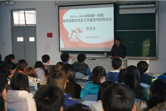 為營造良好的誠信迎考之風(fēng),做好期末安全教育。近日,商貿(mào)系期末安全教育暨溫書迎考大會在2號教學(xué)樓509階梯教室召開,系黨總支陳寶龍副書記、輔導(dǎo)員及學(xué)生干部參加了此次大會,大會由蘇東發(fā)老師主持。
