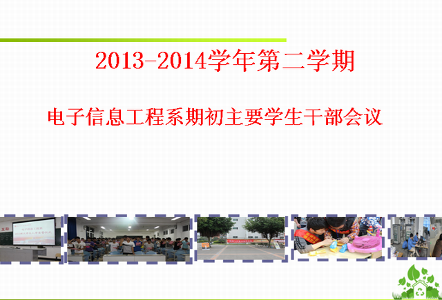 2014年 2月18日下午,電子信息工程系團(tuán)總支在綜合樓408教室召開學(xué)生干部會(huì)議,輔導(dǎo)員、兩委主要學(xué)生干部等參加了會(huì)議,會(huì)議由輔導(dǎo)員湯紹康主持。