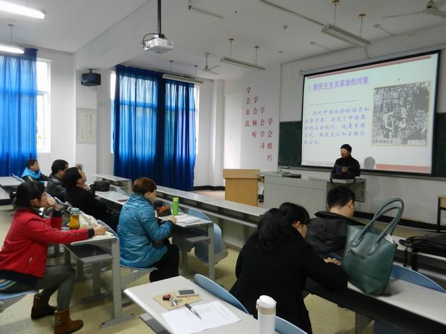 林秉智老師針對(duì)其所負(fù)責(zé)的《新民主主義革命和社會(huì)主義改造》教學(xué)模塊,就該模塊在《概論》課程體系中的地位、作用,教學(xué)目的、教學(xué)手段、教學(xué)內(nèi)容的設(shè)計(jì),以及在授課過(guò)程可能出現(xiàn)的問(wèn)題、所采用的教學(xué)視頻資料、教學(xué)方式方法等進(jìn)行了闡述和分析。其他教師也就各自在備課及教學(xué)過(guò)程中出現(xiàn)的教學(xué)重點(diǎn)與難點(diǎn)提出意見(jiàn)和看法。與會(huì)教師各抒己見(jiàn),整個(gè)交流活動(dòng)氣氛熱烈、內(nèi)容豐富。