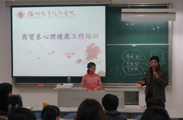 為當(dāng)好學(xué)生健康成長的促進(jìn)者和領(lǐng)路人,2014年3月12日,商貿(mào)系舉辦了《大學(xué)生常見心理問題識(shí)別與心理危機(jī)干預(yù)》專題講座,本次講座邀請(qǐng)了學(xué)院“陽光心理之家”吳萍娜老師主講;商貿(mào)系全體教職工、班級(jí)心理委員、班長團(tuán)支書及宿舍信息員參加了講座。