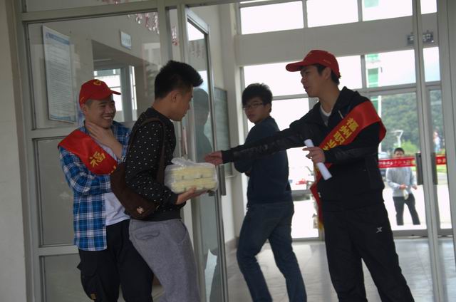 此次活動的切入點為引導(dǎo)同學(xué)們拒絕一次性餐具。學(xué)生會、自律會干部在各棟公寓樓下,勸阻送餐人員將一次性餐盒所包裝的飯菜送上公寓,并普及一次性餐具餐盒難以降解,所含成分有潛在危害,易對環(huán)境產(chǎn)生嚴(yán)重的污染的知識。