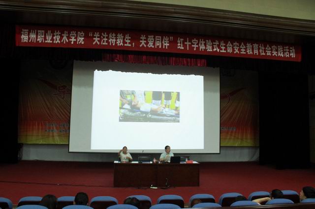 本次講座作為福州職業(yè)技術(shù)學(xué)院“關(guān)注特教生,關(guān)愛同伴”紅十字體驗(yàn)式生命教育系列活動(dòng)的重要組成部分,為特教學(xué)生提供了跟普通學(xué)生一樣接受應(yīng)急救護(hù)教育的平臺(tái)。通過本次講座為開端,進(jìn)一步推進(jìn)我院紅十字體驗(yàn)式生命教育的發(fā)展,希望讓每一個(gè)學(xué)生都能獲得切實(shí)的關(guān)乎生命安全的親身體驗(yàn),進(jìn)一步了解生命、感悟生命、敬畏生命、熱愛生命,讓生命之花綻放得更加絢麗多彩。