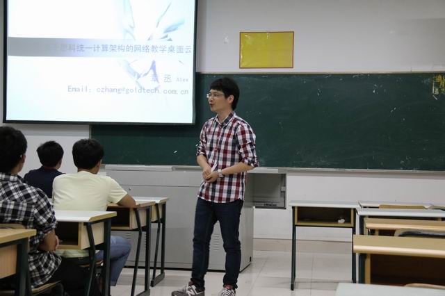 2014年5月14日晚,計算機系邀請金科集團高級項目經(jīng)理章丞老師為計算機網(wǎng)絡(luò)專業(yè)學(xué)生開展以“關(guān)于思科統(tǒng)一計算架構(gòu)的網(wǎng)絡(luò)教學(xué)桌面云”為主題的講座。