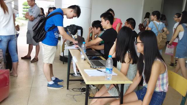 2014年9月4日,天空飄著蒙蒙細雨,但這絲毫不影響迎新人員們的熱情。大家早早地準備著迎新大本營的各項事宜,為了讓新生們更順利完成報到。