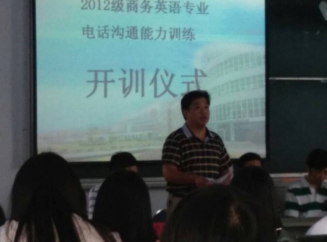 2014年9月10日,應用外語系舉行了2012級商務英語專業(yè)學生電話溝通能力訓練開訓儀式,商貿(mào)物流實訓中心領導、金科公司指導老師、應用外語系領導、商務英語專業(yè)教研室主任、輔導員及2012級商務英語專業(yè)全體學生參加了開訓儀式。